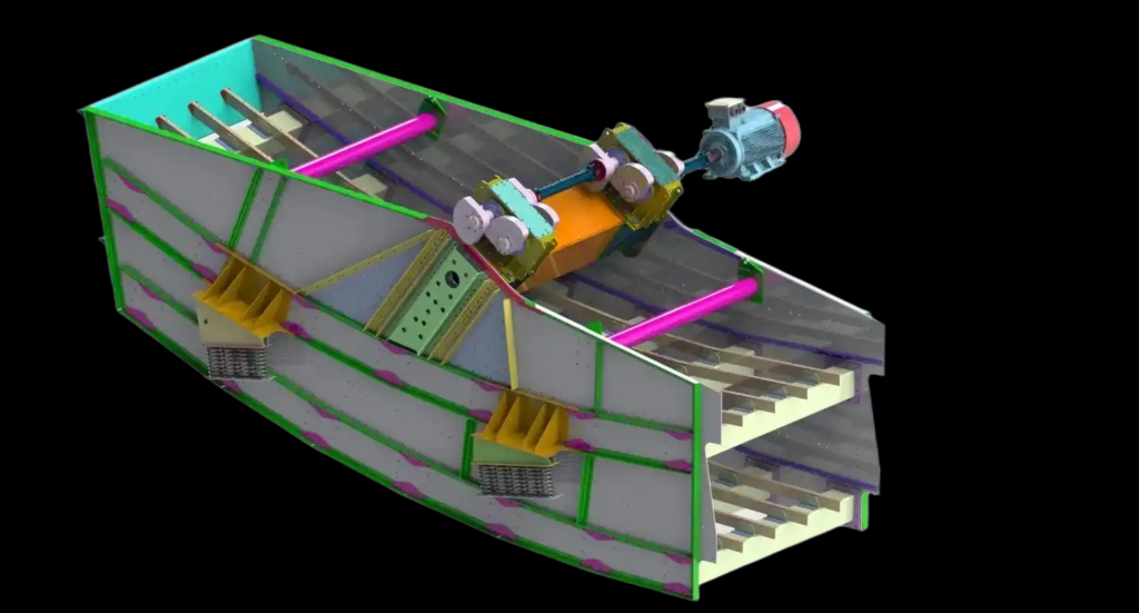The screen surface is in the shape of a “banana” from the feed end to the discharge end, and the slope gradually decreases. Under the action of vibration, larger particles are quickly separated at the steep slope, while smaller particles continue to separate in the flatter area, thereby improving the classification efficiency and screening area.